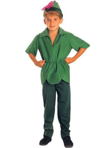 This item features authentic Peter Pan theme hat, green shirt and pants. Comes in Toddler, Small and Medium sizes. Toddler fits children sizes 2-4. Search Tags (child, peter pan, costume, halloween, 2011)